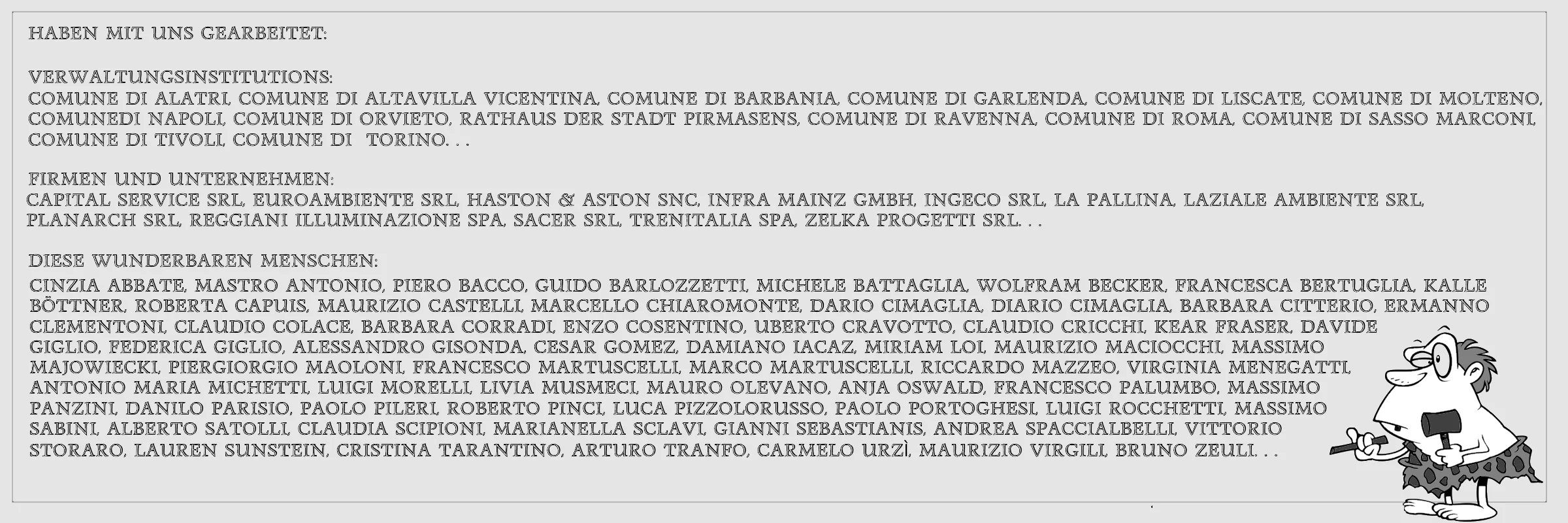 Seit Beginn unserer Tätigkeit bis heute gab es zahlreiche Kooperationen mit anderen Planern, Beratern oder Fachleuten – sowohl etablierten Größen als auch jungen Talenten –, die mit uns als fester Bestandteil des Studios oder als externe Partner zusammengearbeitet haben. Die Zusammenarbeit mit all diesen Menschen hat durch den Austausch von Visionen und Wissen zu fruchtbaren und bereichernden Ergebnissen geführt. Wie ein bekanntes amerikanisches Sprichwort sagt: Wenn wir einen Dollar tauschen, werden wir nicht reicher, aber wenn wir eine Idee tauschen, bereichern wir uns beide um diese Idee.
