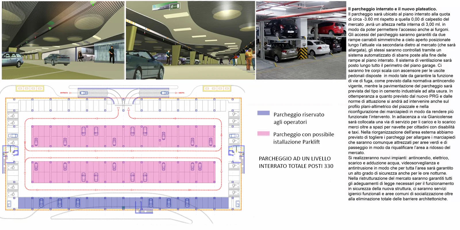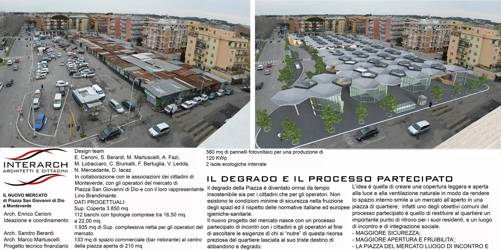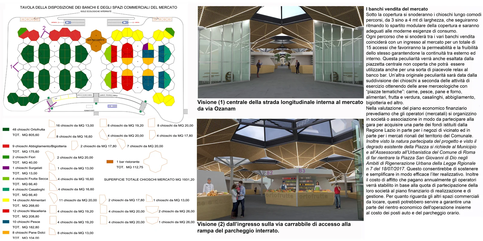 Il progetto è nato con la fattiva collaborazione dei cittadini e degli operatori del mercato con l'intento di porre fine al degrado dell'area ridefinendola come vera e propria piazza del mercato rionale. La sinergia economico finanziaria creata con la società che avrebbe gestito il sottostante parcheggio per 330 posti auto, avrebbe permesso la disponibilità di fondi per il 70% dell'opera