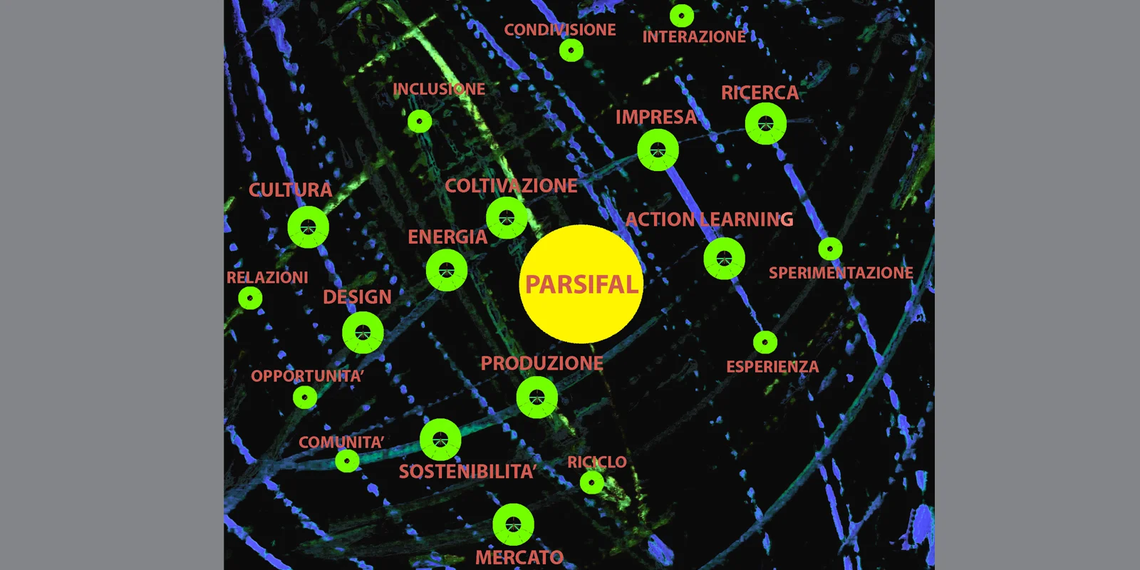 Nelle immagini che scorrono l’ideogramma del Layout relazionale di PAESIFAL e alcune locandine web che segnano il percorso della condivisione e della partecipazione al progetto.