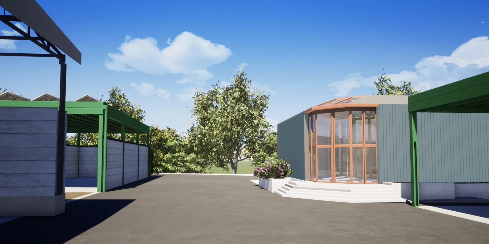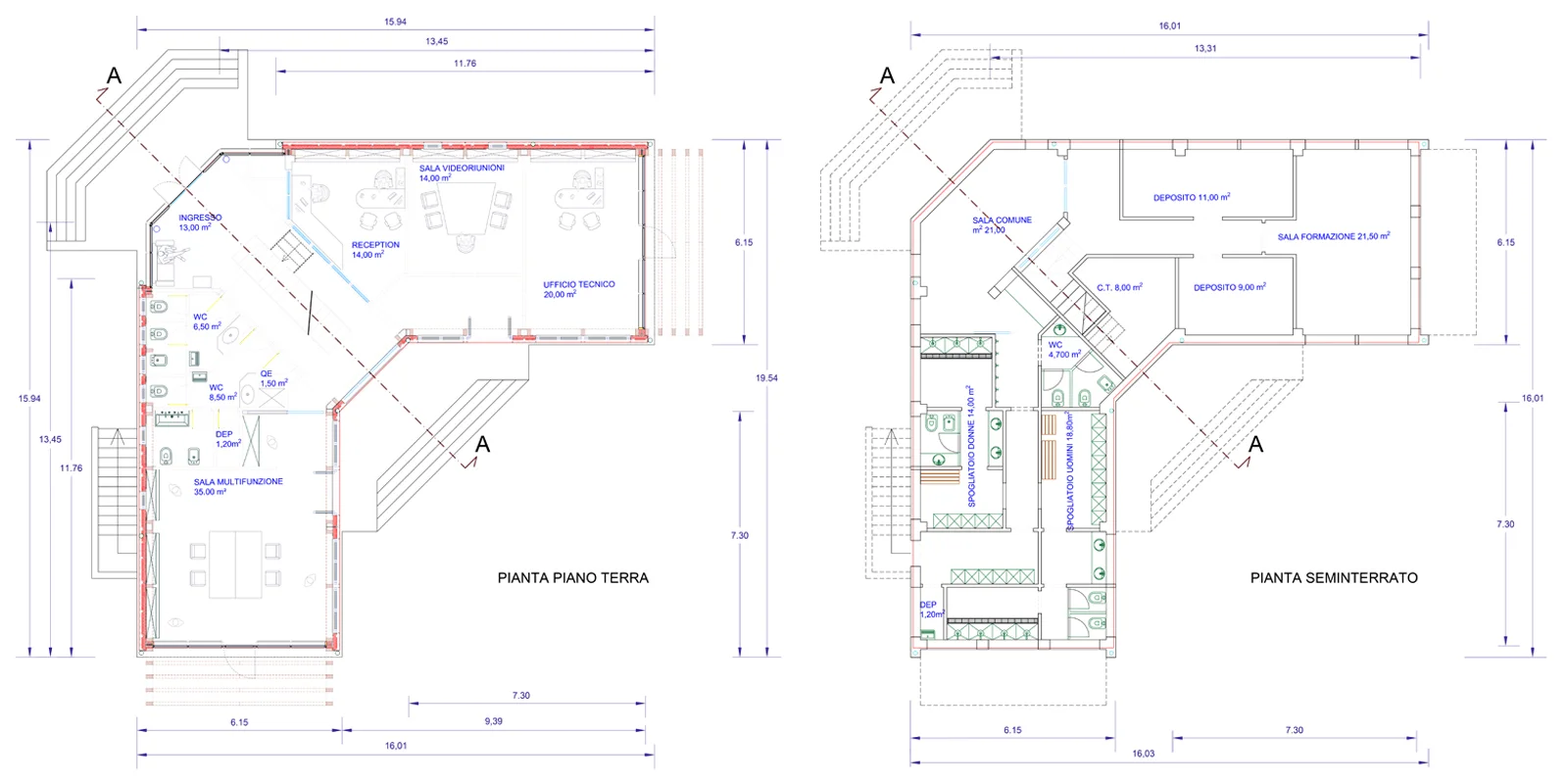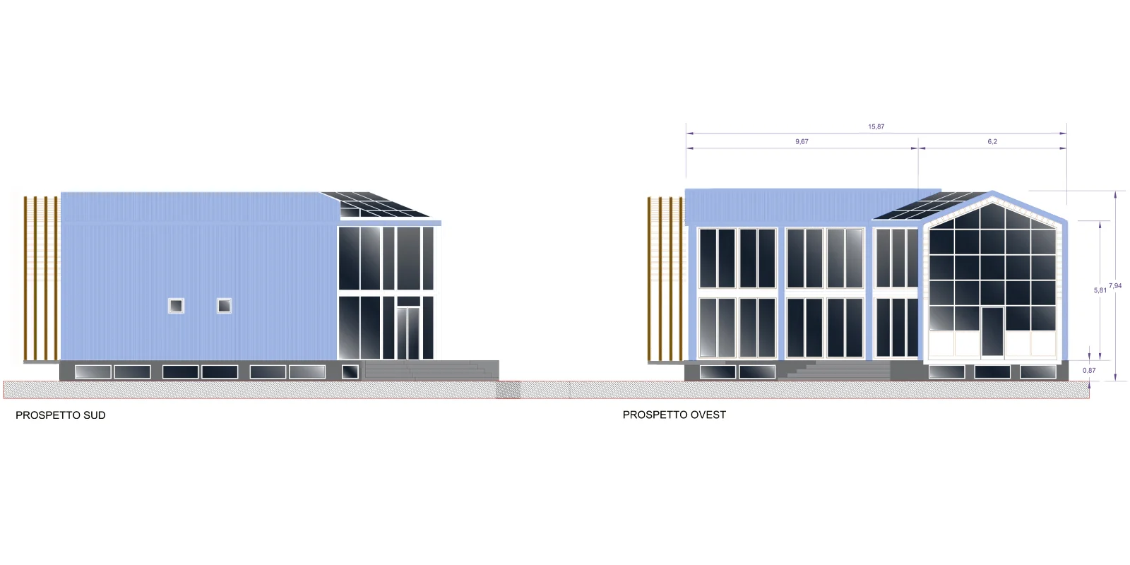 (nelle illustrazione bisogna togliere la n.6, 7, 8, 9) Uno spazio pensato, su tre livelli, per più categorie di fruitori: dai dipendenti lavoratori dell'impianto, ai fruitori e clienti, dalla Direzione tecnica al Team di Ricerca e Sviluppo connesso all'attiguo laboratorio della Serra Olandese. Le vetrate ampie insistono sui fronti interni verso il giardino a Nord e Ovest; i fronti verso Est e Sud sono pressoché opachi ad esclusione di piccol
