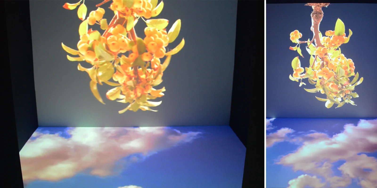 Le opere sono distribuite intorno ad un cubo bianco al cui interno l'osservatore può entrare e trovarsi immerso nella proiezione multipla del video dell'artista Federica Giglio